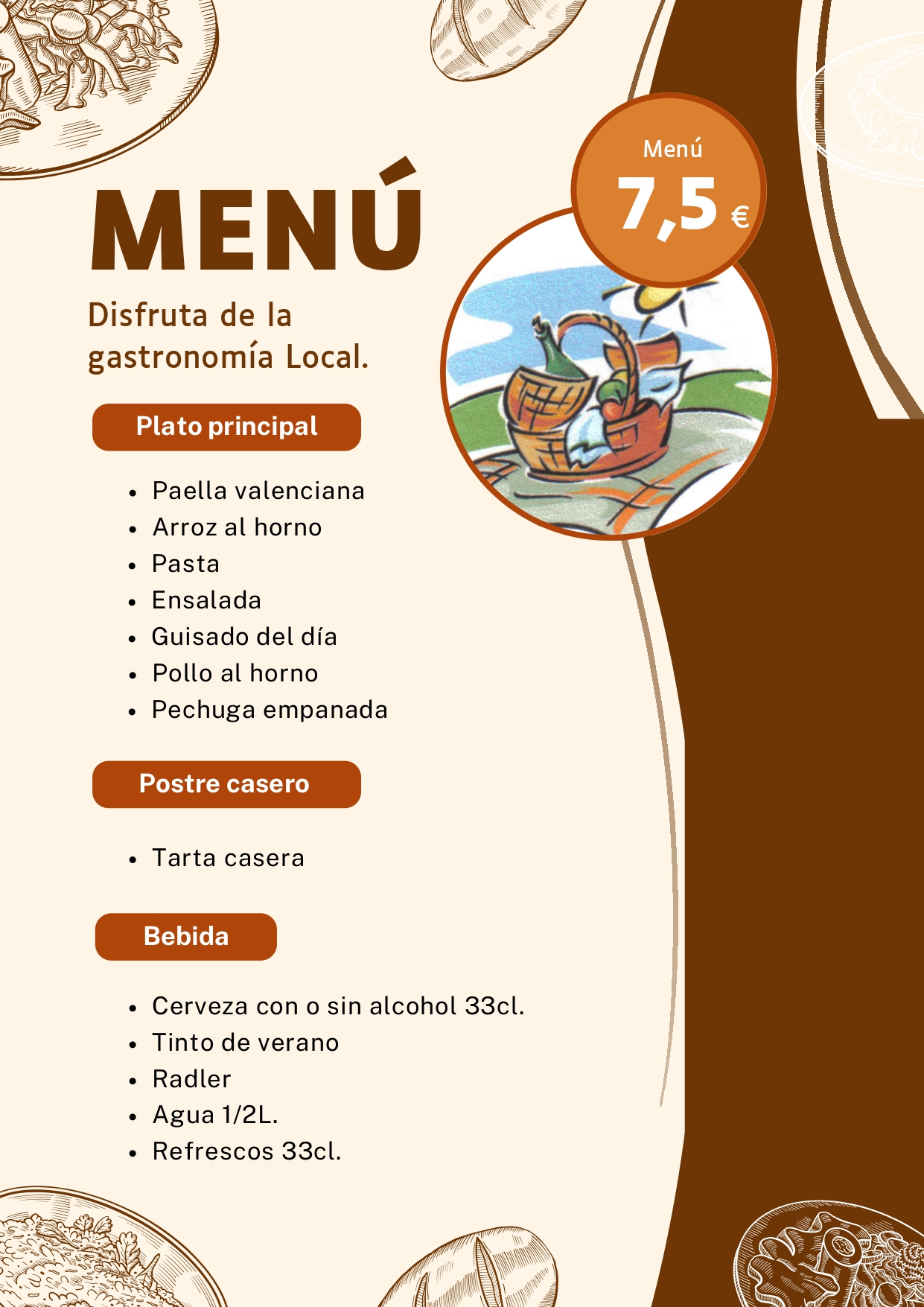 La comida siempre esta preparada en el mismo local que se vende y elaborada el mismo día que la vendemos.